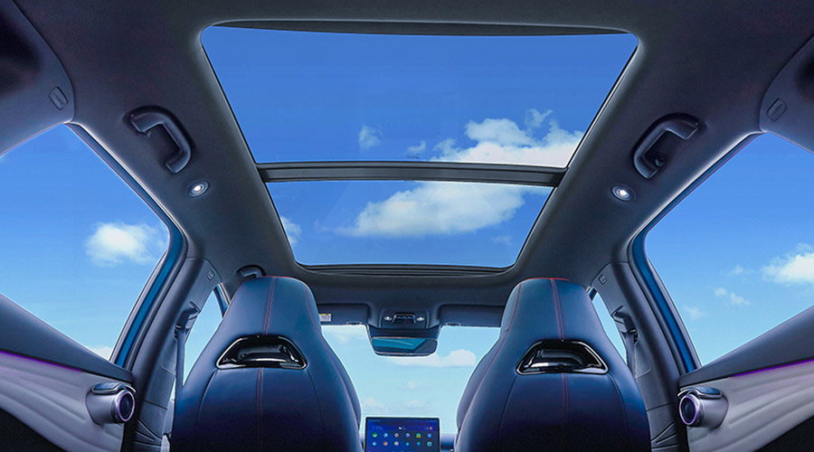 Inspired by the feather, the daytime running lights are elegant, echoing the new dragon's whiskers, like a dragon soaring and imposing. The unique light processing technology enhances the lighting width to 16.7 meters, far exceeding the level of the same class, greatly enhancing the night driving experience. When unlocked/closed, the front and rear LED headlights show a breathing light effect and light up slowly, just like a dragon waking up for the first time.